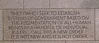 whole trip to Capitol Hill and this report. The first picture shows the Roosevelt Memorial from a distance. The second is a close-up of the inscription therein. This photo was obtained from a postcard in the gift shop of the Capitol Building that visitors traverse prior to exiting the nation's leading policy-making site. The inscription reads: