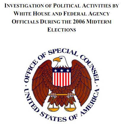 Looking at inappropriate use of government facilities on government time, the report states " The evidence shows that nearly all of the 75 political briefings of which OSC is aware were presented in conference rooms and auditoriums at federal agencies as well as at the EEOB."