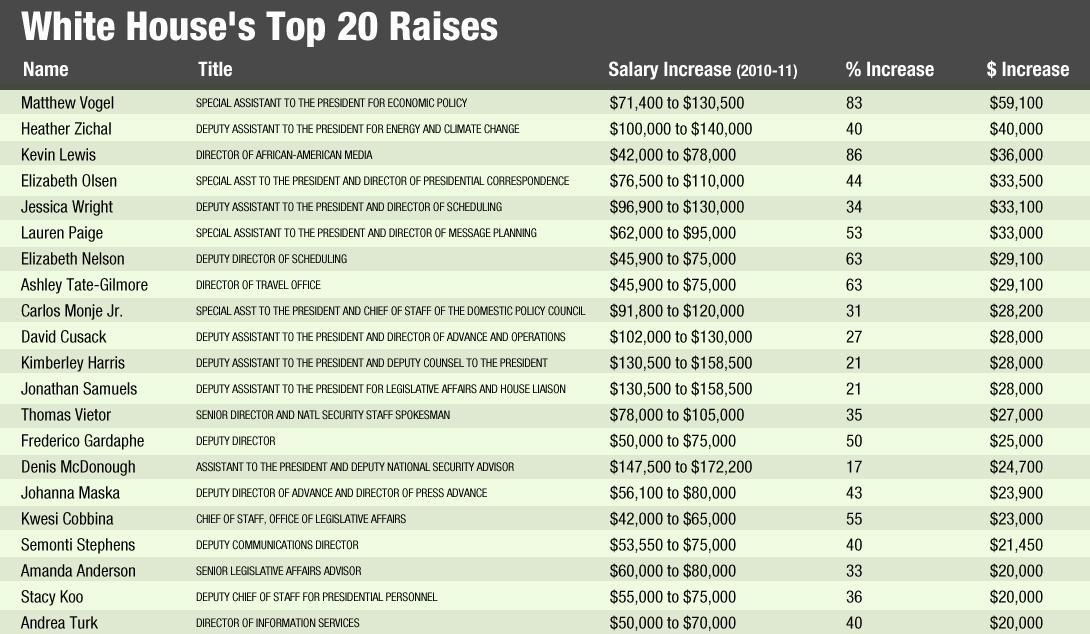 TOP TWENTY SALARY INCREASES IN WASHINGTON, DC - 2010-2011