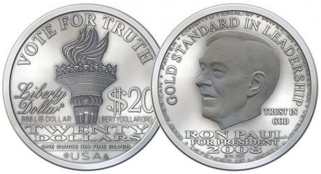 But there is another "detail" I didn't mention in my last message. Not only does the robbery protect the Federal Reserve's fiat currency scam, but as it happens, a rather large shipment of newly minted Liberty Dollars, with RON PAUL'S face on them, was also stolen. Golly gee, you don't think the Bush administration would steal them to try to keep an ACTUAL Constitutionalist out of power, do you? (If you don't think he would, you're an idiot.) Imagine a TON (literally) of Liberty Dollars with Ron Paul's face on them, circulating around the country. No wonder the federal fascists stole them all before that could happen.
