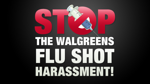 Let's get 'em in the loop on this, shall we? A lot of people are not happy about how they are being treated at the Walgreens checkout counter. Some Walgreens stores are reportedly getting very aggressive with their pushing of vaccines onto customers, so we have decided to launch a public complaint campaign called Stop the Walgreens Flu Shot Harassment!