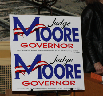 "Our state sovereignty, routinely ignored by an all-powerful federal bureaucracy, and our concept of virtue and morality has been distorted and twisted to a point that good is now called evil, and evil is now called good," Moore said. "I'll tell you, ladies and gentlemen, we not only find ourselves in a great economic recession, but in a great moral and spiritual depression as well."